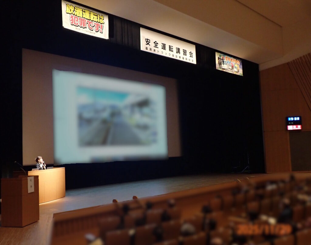 福岡県トラック協会 福岡東分会様と九州トラック交通共済協同組合様の共催での業務で、安全運転講習会にて講演いたしました。